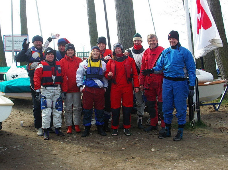 2. Tag: Unsere Trainingsgruppe bestand aus den Teilnehmern: Jan Wirbeleit, Till Wirbeleit, Robin Kern, Jule Hofmann, Jorgen Holm, Bernd Willmann, Cornelia Wirbeleit, Erik Bork (die letzteren zwei teilten sich abwechselnd Erichs OK und das Trainerboot > vielen Dank noch mal an den SC-Karolinenhof für die Leihgabe!) und natürlich mir. Dazu kam noch Ute Witke, die sich aber beim Verladen wohl vergriffen hatte und mit Ihrer Europe erschien (aber das wird ihr so schnell sicher nicht mehr passieren, nachdem Erich sie in einer Wettfahrt mal eben auf der Zielkreuz „abjebacken“ hat).