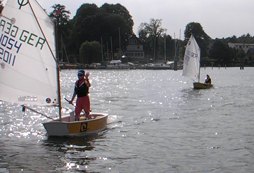 eines Optis (Nr. 9) Bei sehr böigem Wind wurden am Nachmittag von Simon und